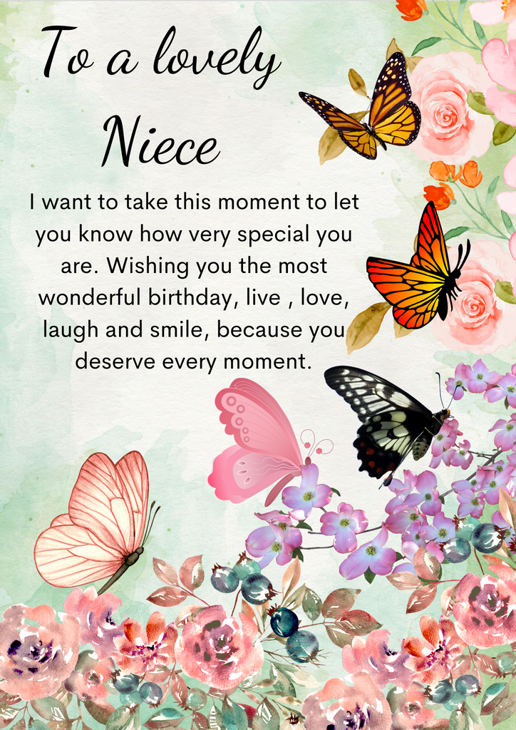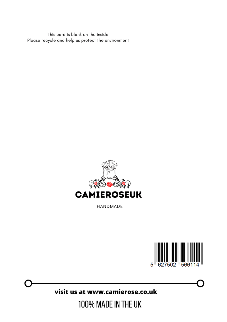 Make your niece feel appreciated and cherished on her special day by sending her a Camieroseuk Birthday Card. Printed on 225gsm textured linen cardstock , the card is A5 in size, our card comes complete with colourful butterflies for added vibrancy. All our cards are dispatched securely packaged with an envelope and sleeve for safe delivery. Blank inside, we offer personalisation options upon request. A stylish and meaningful way to celebrate your niece's milestone.