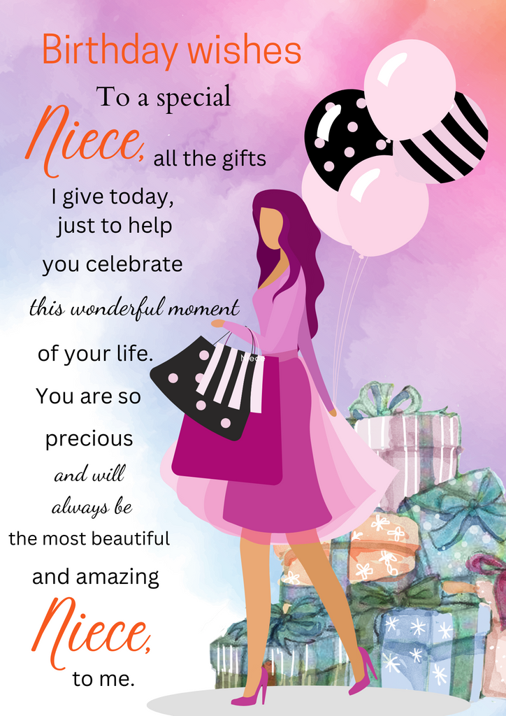 Birthday card for Niece, Camieroseuk customised cards