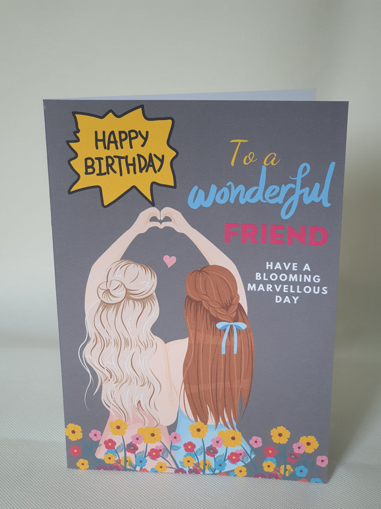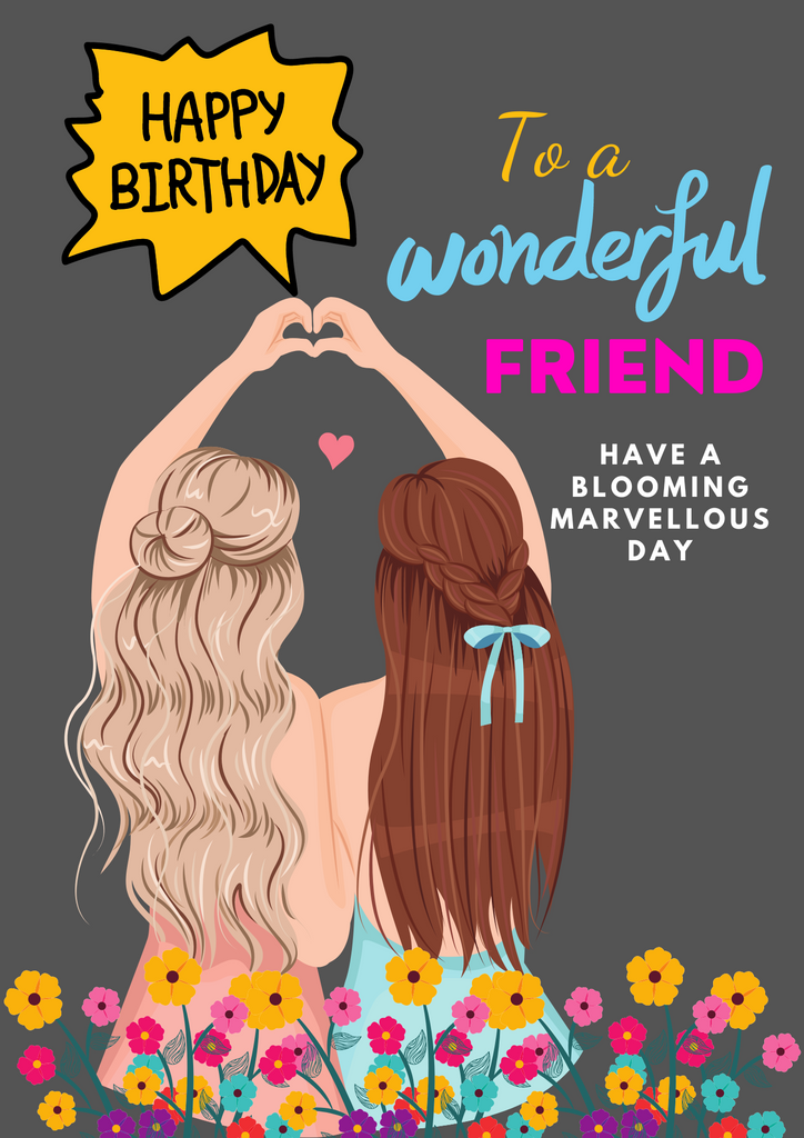 A lovely design featuring best friends, have a blooming marvellous day card with lots of vibrant floral details. Give them something special on their big day, the card is blank on the inside but can be customised at the buyers request, please leave us a message regarding customisation. The card is A5 in size and printed on 225gsm textured linen cardstock. It is dispatched to you in an envelope and sleeve jacket with lots of outer protection, so we can ensure your card arrives in pristine condition.
