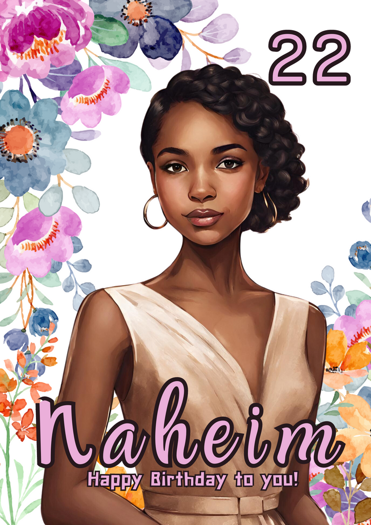 A card for the beautiful, strong, and confident young lady, whether she is a sister, friend or daughter this card is a wonderful addition to all the birthday surprises. The card is A5 in size and printed on 225gsm textured linen cardstock. It is dispatched to you in an envelope and cello bag, so we can ensure your card arrives in pristine condition. The card is customisable, you can add a name or age. The card comes with additional text on the inside but you can also request to have your own message. Please leave us a message regarding personalisation.
