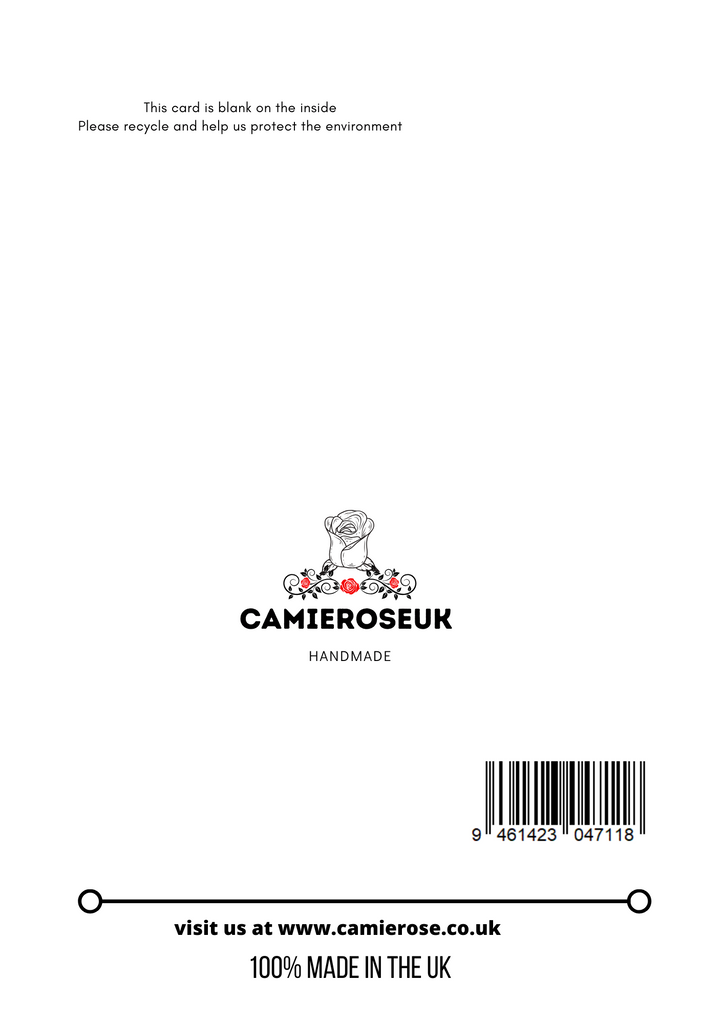 "Show your love and appreciation for the radiant young lady in your life with a Camieroseuk birthday card designed just for her. This A5-sized card is a heartfelt tribute to the beautiful spirit that brightens your family's world.The card is A5 in size and printed on 225gsm textured linen cardstock, simple but stunning designs for the ones that mean the most to you. It is dispatched to you in an envelope and cello bag, so we can ensure your card arrives in pristine condition. The card is customisable, you can add a name and age. The card comes with a short message at the front but you can also request to have your own text. Please leave us a message regarding personalisation.