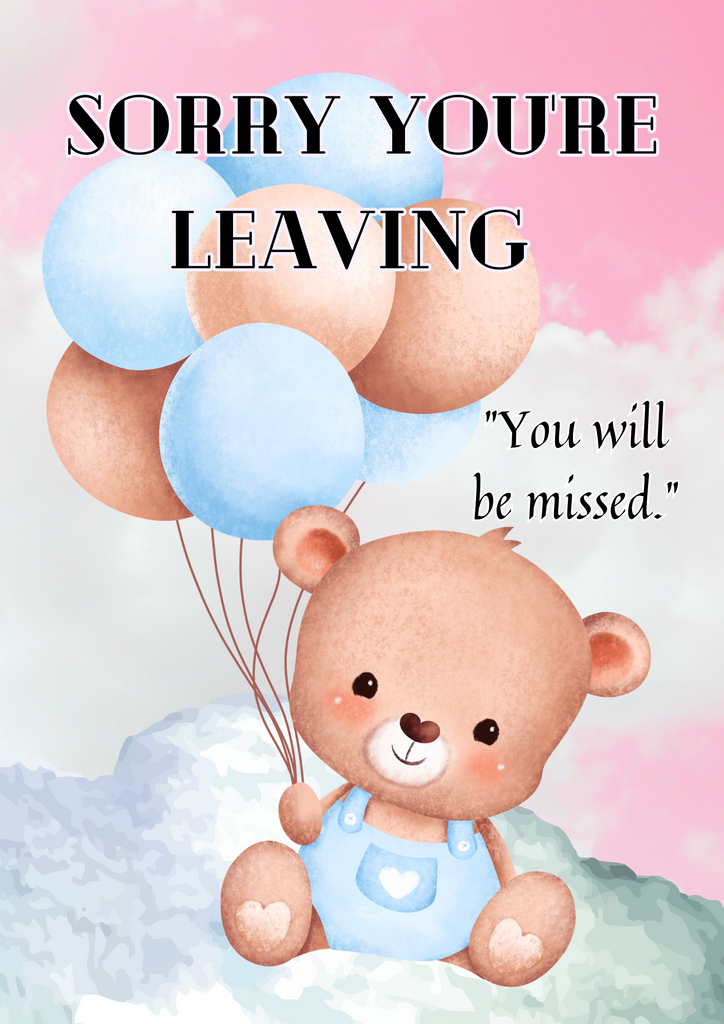 "Sorry to see you're leaving, you would be missed. Cute teddy farewell card! When it comes to saying goodbye, Camieroseuk is here to make it a touch more manageable. This A5 card is brimming with thoughtful and heartwarming sentiments that echo your deepest emotions.