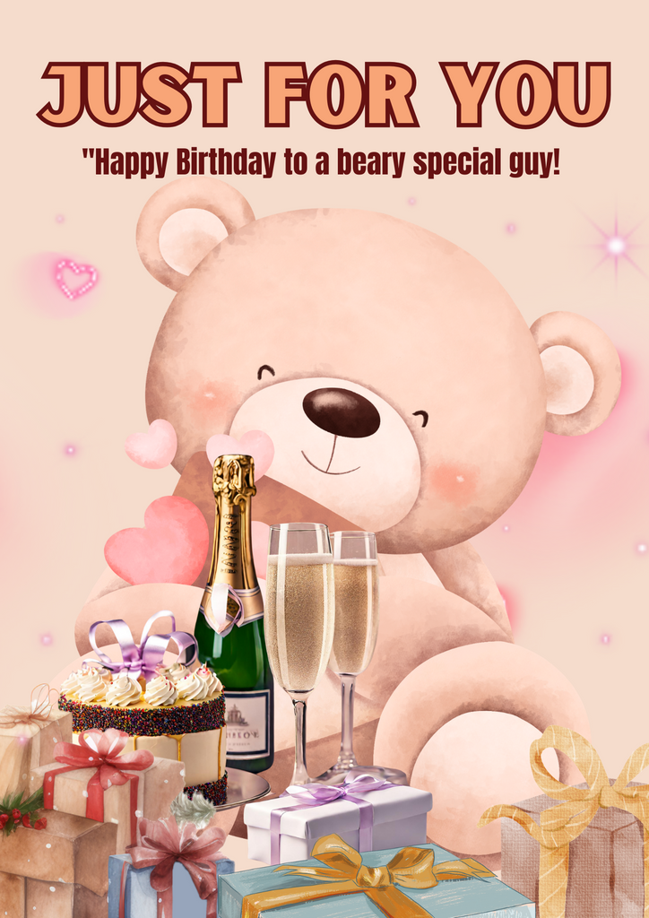 ""Celebrate His Special Day with Cuddly Wishes! Our charming birthday card for him features an adorable teddy bear design that's as heartwarming as your sentiments. The card is A5 in size and Printed on high-quality 225gsm linen textured cardstock. All our cards are packaged in a jacket sleeve, with lots of extra protection to ensure it arrives in perfect condition. The card comes with a short pre-written message on the inside and additional text at the front. Yes! we have done all the hard work for you but if you wanted to make the card even more unique, feel free to add your own text. Just leave us a message at checkout. Let the celebration begin.