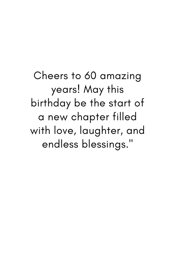 Celebrate 60 remarkable years with our stunning sixtieth birthday milestone card. Featuring beautiful bold prints and heartfelt sentiments, this A5 card is printed on premium 225gsm textured linen cardstock. It comes carefully packaged in an envelope and sleeve jacket, with extra outer packing to ensure it arrives in pristine condition. Personalization is available upon request, allowing you to add a special touch to this meaningful keepsake. Cheers to 60 amazing years!