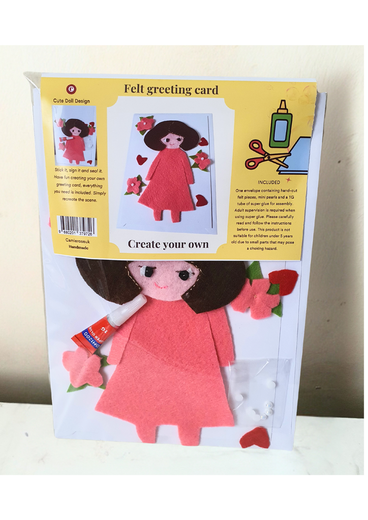 Felt greeting card kit, Cute doll, Handmade cards for any occasion at Camieroseuk.