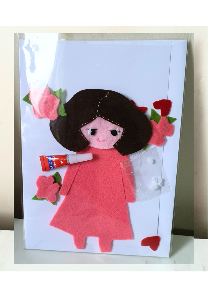 Discover the joy of creating with our unique felt card kits, featuring a cute doll. The card comes with pre-cut pieces for assembly, offering a fun and engaging experience for both sender and recipient.