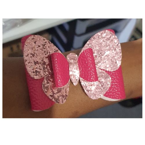 This beautiful handmade headband is perfect for any occasion. Measuring 11cm in diameter and 13.5cm in height, it offers plenty of flexibility. Featuring a stunning butterfly design crafted from a combination of glitter vinyl and leather, this headband is a perfect accessory for any event. Sold as a single piece, choose your colour at checkout.