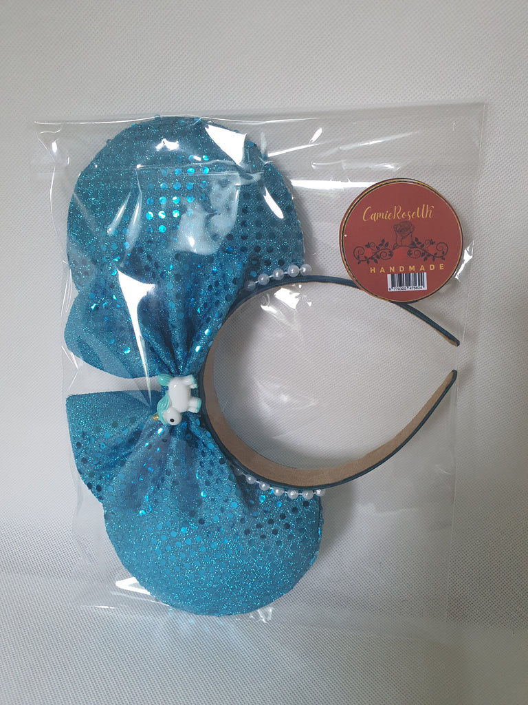 Our mermaid-themed stuffed ears are the ideal accessory for everyday wear or your next park holiday. Each headband is handmade and features a beautiful mermaid print, making it fun and stylish. One size fits all, making it a perfect addition to any outfit.