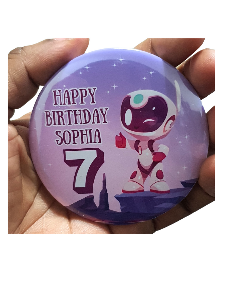 Elevate the Excitement with Our Space-Themed 75mm Birthday Badge! 🤖