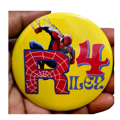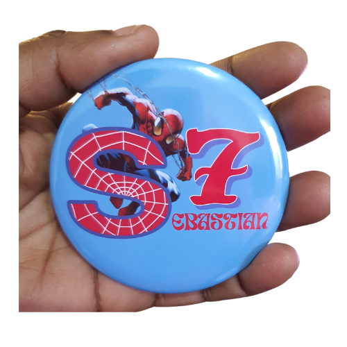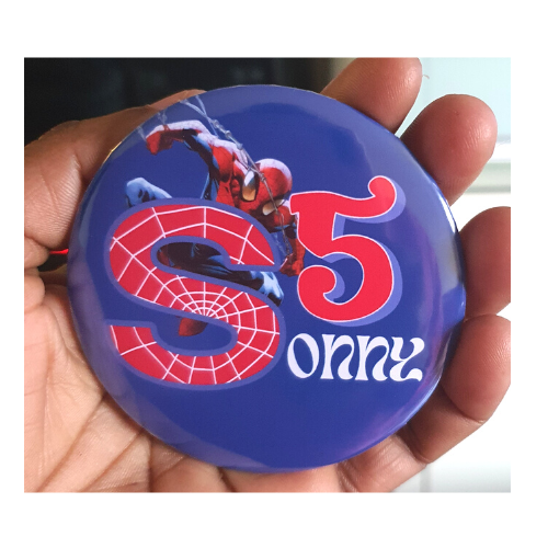 Spiderman inspired birthday badge, 75mm buttons, Customised badges, Camieroseuk