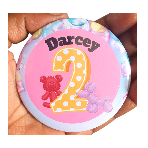 Help them celebrate with this super cute, super simple balloon button. The badge is 75mm in size which is equivalent to 3 inches. All our badges are beautifully designed with little one's in mind, they boast lot's of character and vibrant colours. The badge is printed on 160gsm photo paper and coated with acetate material, which gives it a glossy professional finish. It comes with a plastic backing and a pin safely embedded, please refer to photo. The badge can be customised with any age or name at your request. Please leave us a message at checkout.