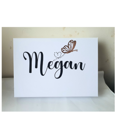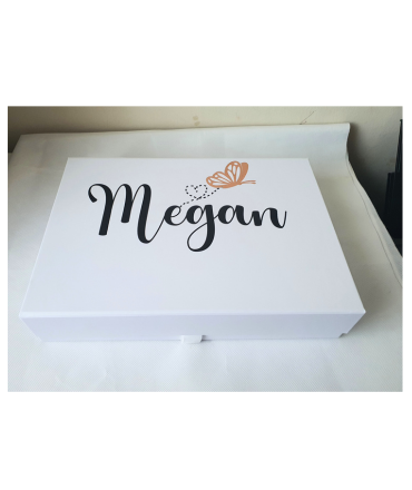 Box details: A4 laminated magnetic gift box, 310 x 220 x 65 mm, print created from self adhesive vinyl.