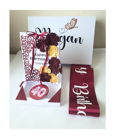 Birthday boxes at Camieroseuk, Gifts for her, Burgundy box.