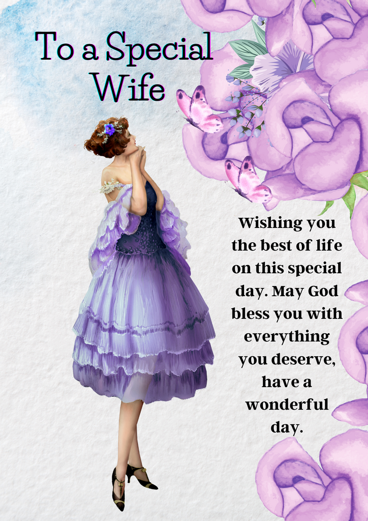To a special wife, wishing you the best of life on this special day. A Beautiful floral design for the wonderful woman in your life that means so much. The card is A5 in size and printed on 225gsm cardstock. It is dispatched to you in an envelope and cello bag, so we can ensure your card arrives in pristine condition. The card is blank on the inside but can be customised at buyers request, please leave us a message regarding personalisation. This card will make the perfect lasting impression on your special wife, whether for her birthday or any other occasion.