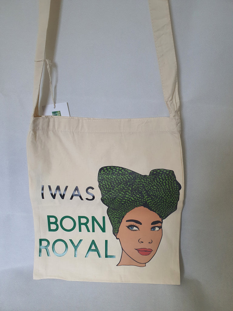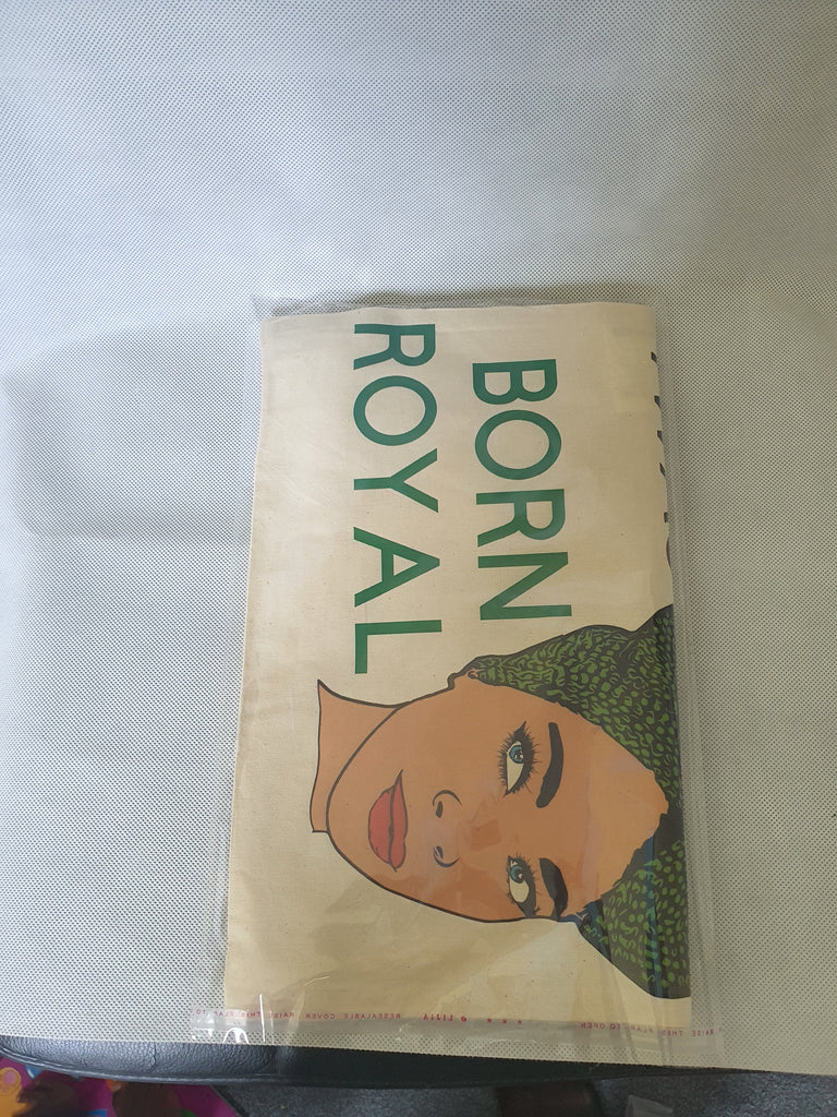 I was born Royal, empowered tote bag. All our bags are printed in house, we use premium vinyl and transfer paper to accomplish the look of this bag, our choice of material ensures that we deliver high quality bags that won't wash out. These bags make the perfect gift for a friend, shopping or any other occasion.