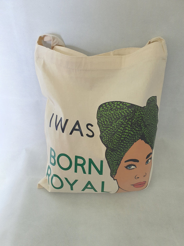 Born Royal tote bag, empowered tote bags for black women, CamieRoseUK