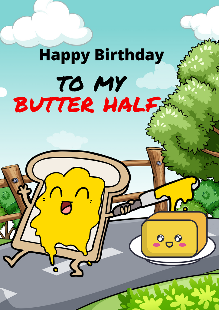 Happy birthday to my Butter half! This funny and heartwarming card is designed to add a smile to his special day. Why be serious when you can share a laugh? We're certain it'll have him giggling! This card comes with a pre-written message inside but can still be customised at the buyers request, please leave us a message regarding customisation. The card is A5 in size and printed on high quality 225gsm textured linen cardstock. It is dispatched to you in an envelope and cello bag, so we can ensure your card arrives in pristine condition.