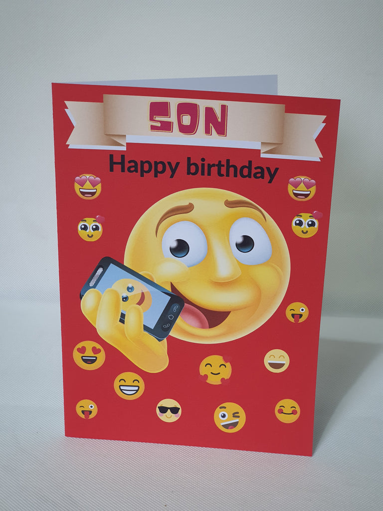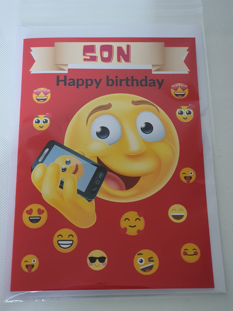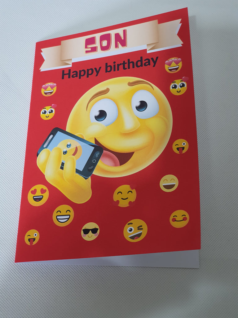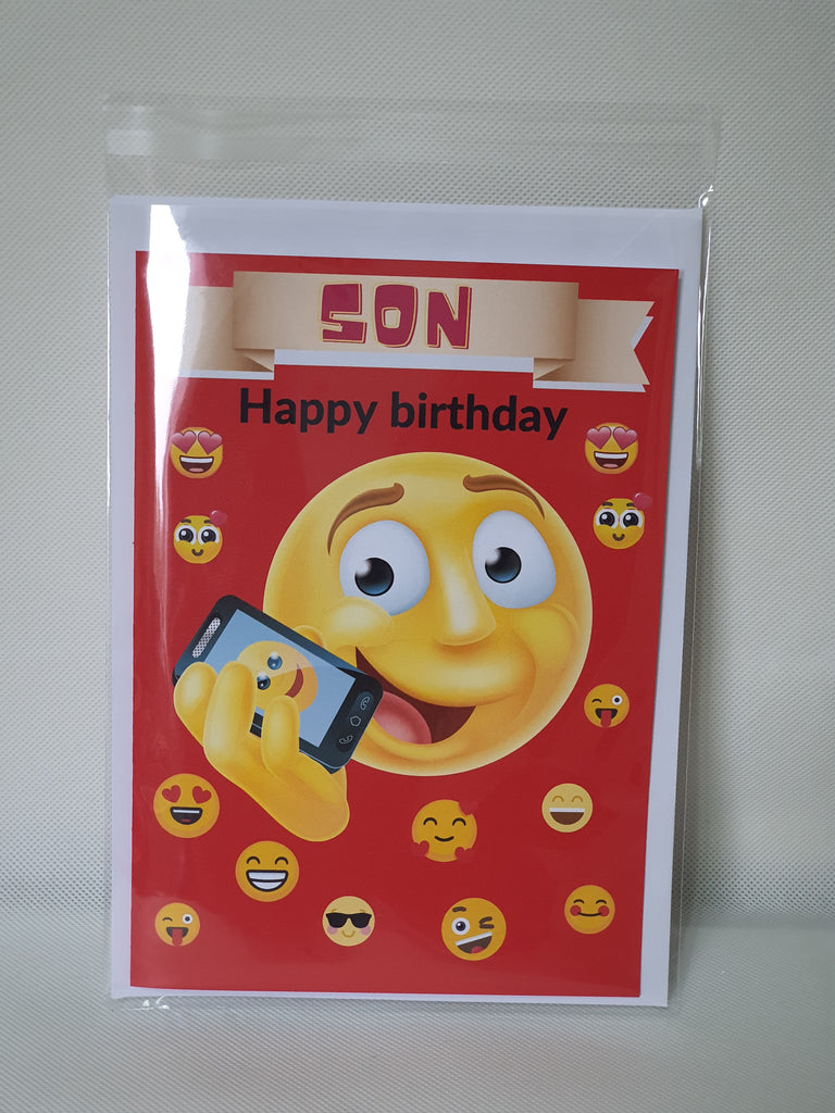 Emoji birthday card for son, CamieRoseUK, wholesale, (Pack of 10)