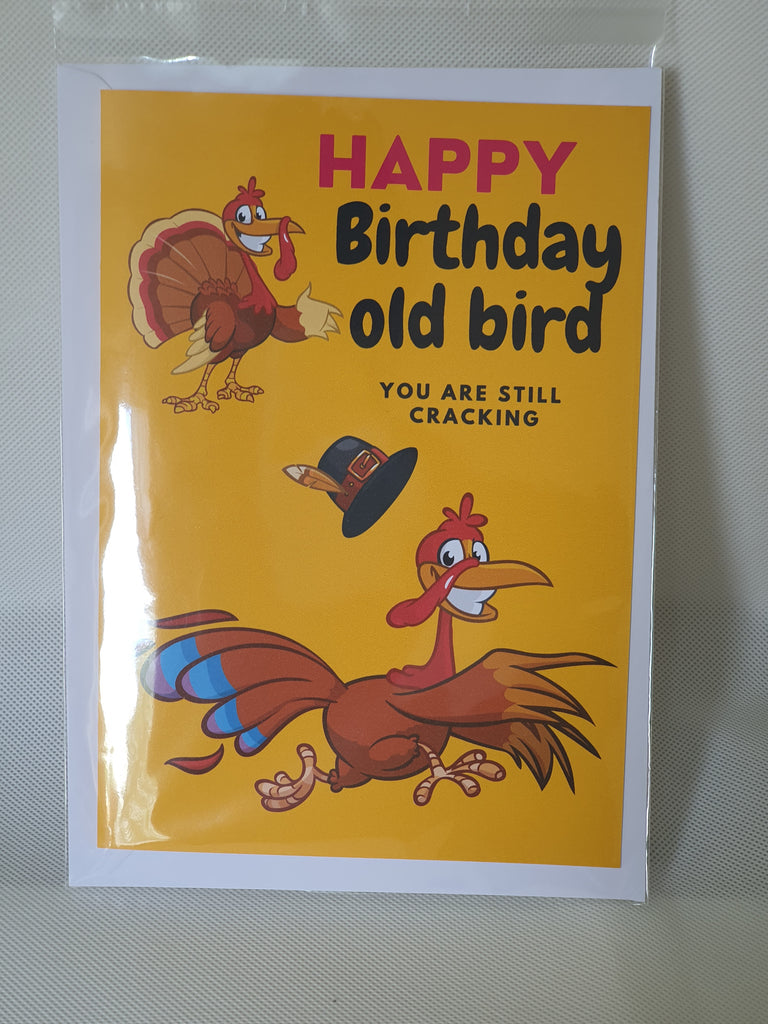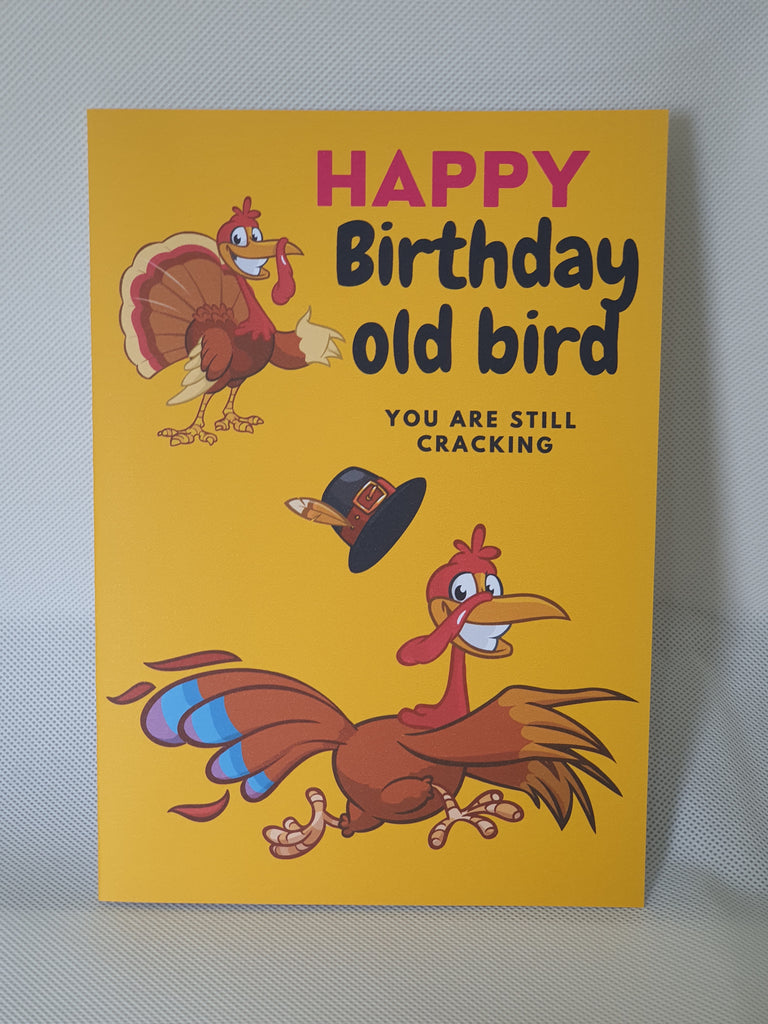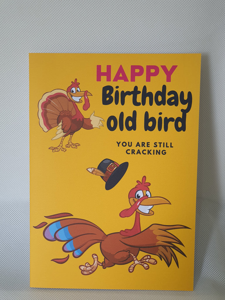Funny happy birthday old bird birthday card for a friend with bold inside text. Why be serious when you can have a laugh, give them a smile on their birthday. The card can be customised at the buyers request, please leave us a message regarding customisation. The card is A5 in size and printed on 300gsm cardstock. It is dispatched to you in an envelope and cello bag, so we can ensure your card arrives in pristine condition.