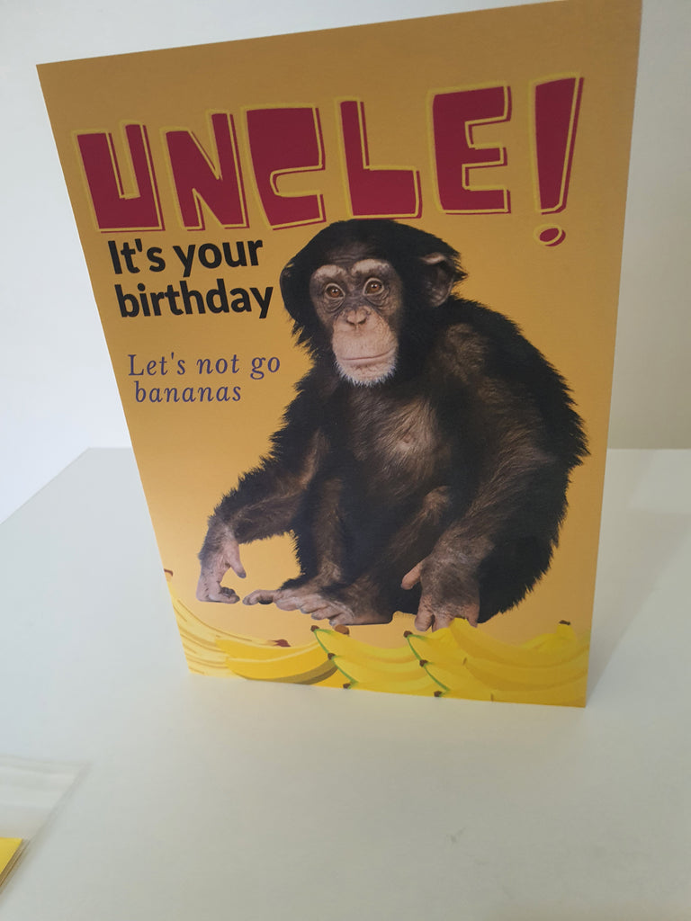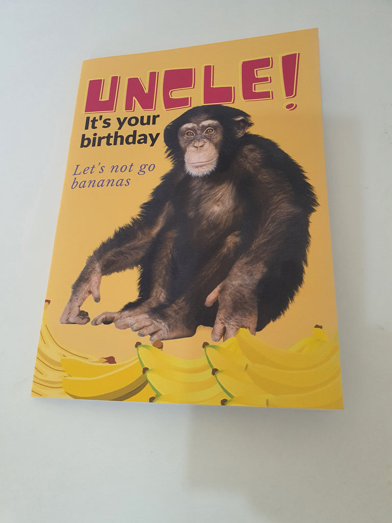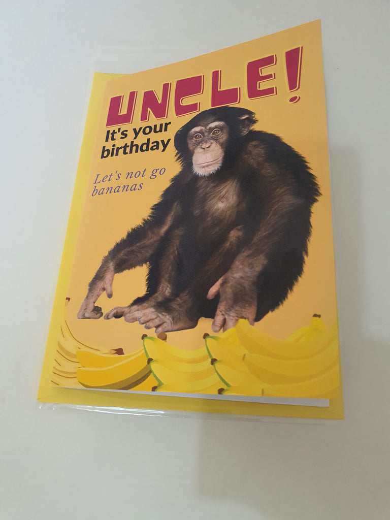 Chimp birthday card for an uncle, funny cards, handmade at CamieRoseUK
