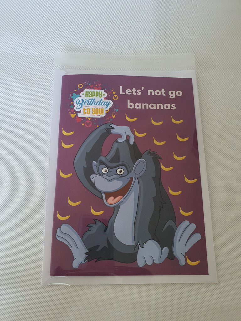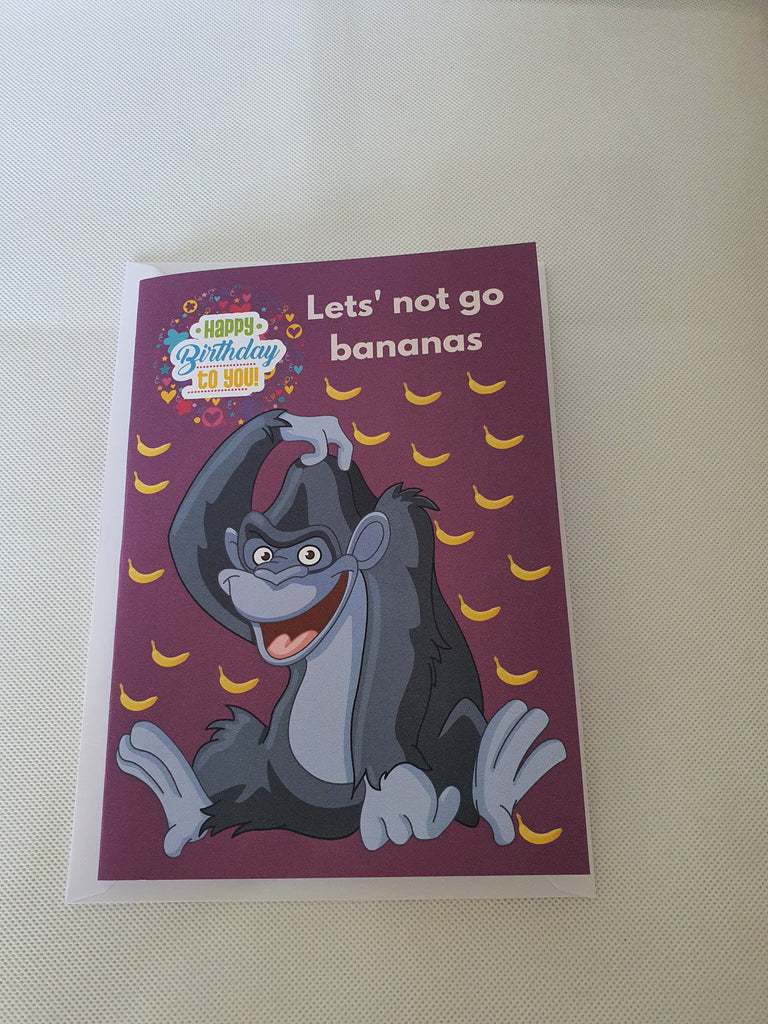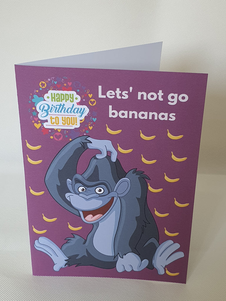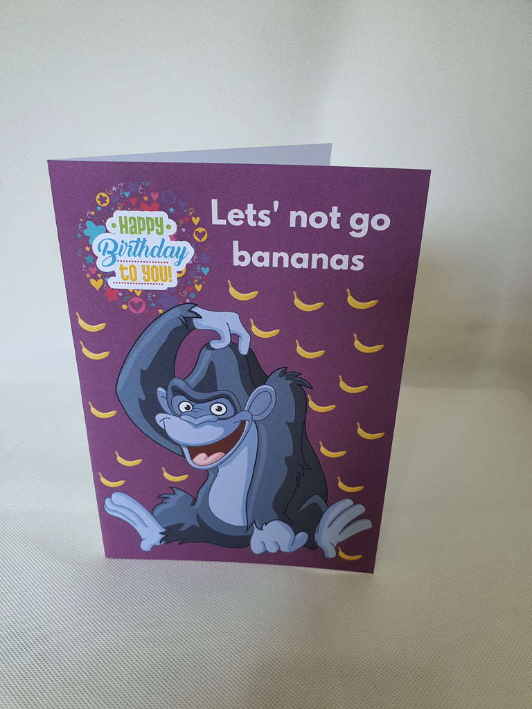 A funny heart warming card, let's not go bananas, why be serious when you can have a laugh, give them a smile on their big day with this quirky little number. We are certain that it will have them giggling. The card is blank on the inside but can be customised at the buyers request, please leave us a message regarding customisation. The card is A5 in size and printed on high quality 300gsm cardstock. It is dispatched to you in an envelope and cello bag, so we can ensure your card arrives in pristine condition.