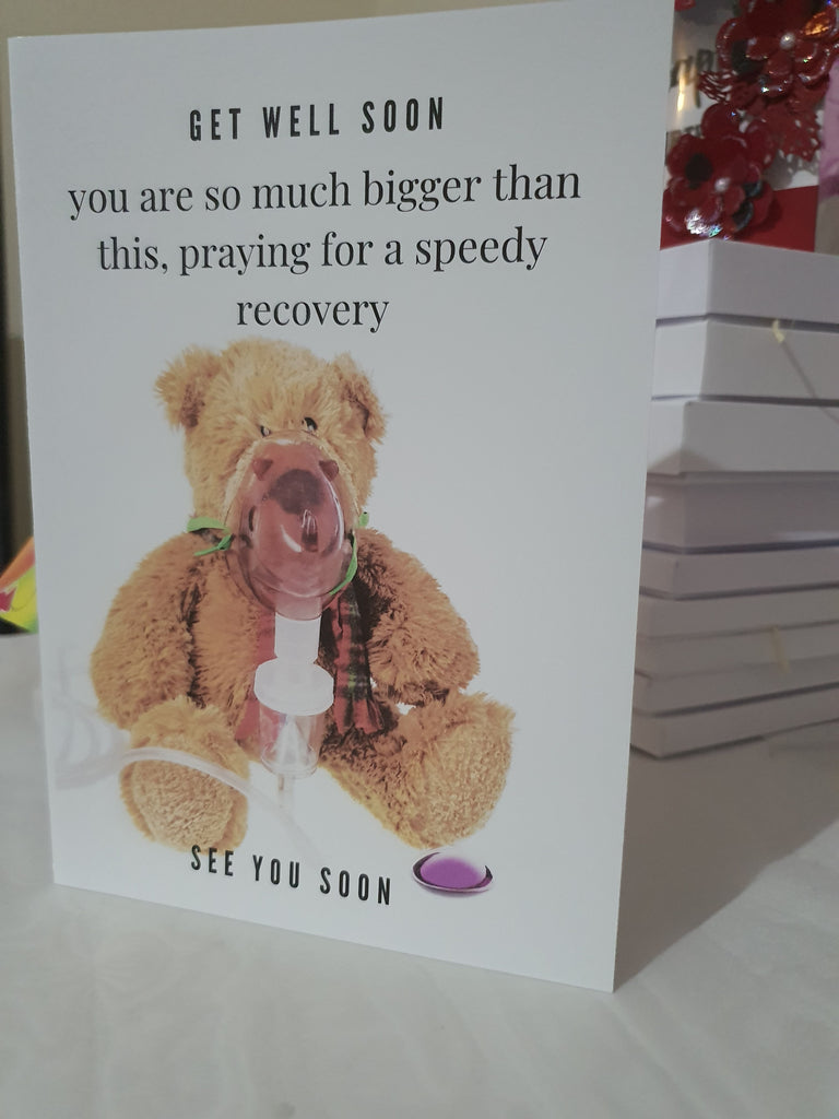 Get well soon card, teddy card, encouragement card, CamieRoseUK