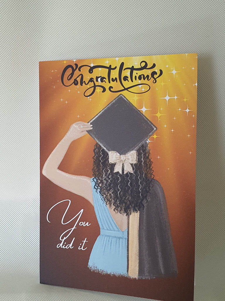 A great card for the graduate, lets face it getting to this point is no walk in the park, it's an actual triumph; so let them know how super proud you are of their achievements. This card is perfect for a daughter, granddaughter, niece to help celebrate their achievement. The card is A5 in size and printed on high quality 300gsm cardstock, it is blanked on the inside but can be customised at the buyers request, please leave us a message at checkout. We dispatch all our cards in an envelope and cello bag, this ensures that your card gets to you in pristine condition.