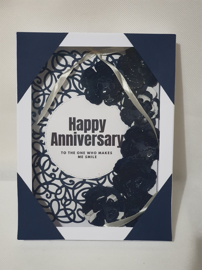 CamieroseUK exclusive design Ribbon card, crafted with lots of beautiful details, delivering a stunning card at your door that is so beautiful you would not believe it's all handmade, the cards are blank inside with messages written on the outside. Choose the occasion that suits you or ask us to customise, from birthdays, to get well soon to anniversary or whatever your request. Our cards are perfect celebratory pieces. The floral pieces and swirly background have been mounted on 300gsm white card stock. The card comes in a matching box which has also been handmade, the box boast a beautiful window created from acetate material which showcase the card.