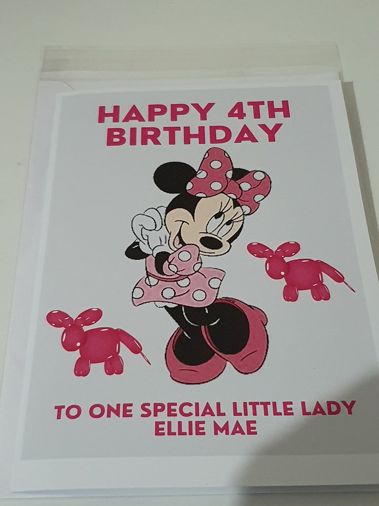 Minnie mouse personalised birthday card for son or daughter
