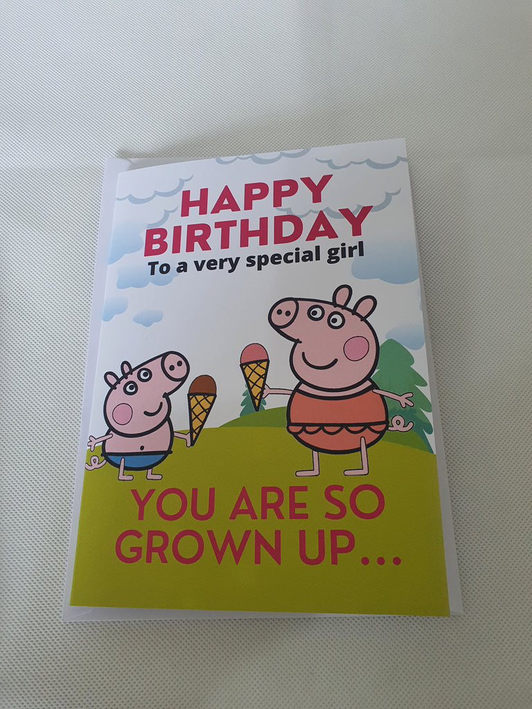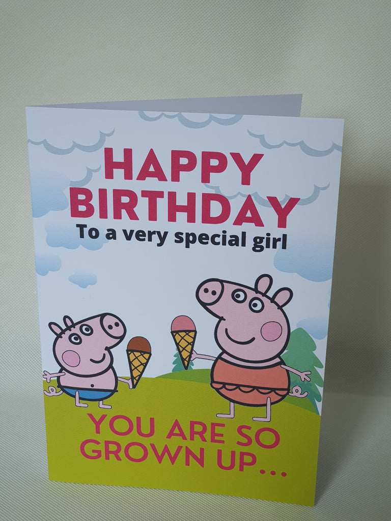 Peppa pig birthday cards, CamieRoseuk, personalised peppa pig cards