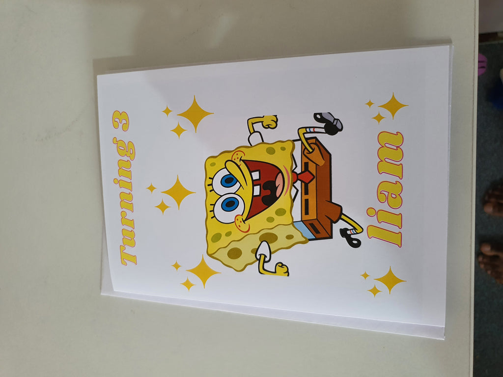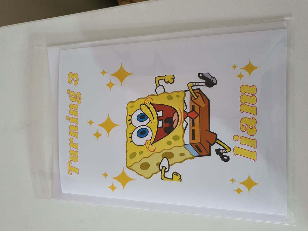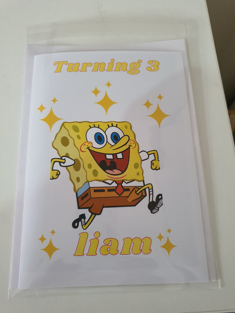 Sponge Bob character birthday card, Customised cards at CamieRoseUK