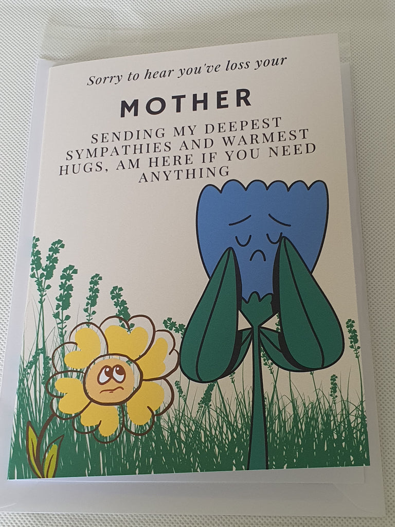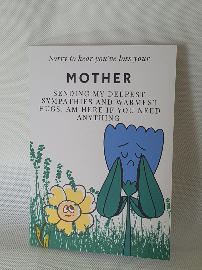 Sometimes when it's all too difficult to say it yourself; say it with a card. Our sorry to hear you've loss your mother card will show them how you feel in not so many words. This card is A5 in size and printed on 300gsm cardstock. It is dispatched to you in an envelope and cello bag, so we can ensure your card arrives in pristine condition. The card can be customised at the buyers request, please leave us a message regarding personalisation.