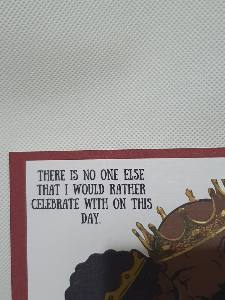 There is no one else I would rather celebrate with on this day. Celebrate valentine's day at Camieroseuk, celebrate black love with our super cute designs. This card is blank on the inside but can be customised at the buyers request, please leave us a message regarding customisation. The card is A5 in size and printed on 280gsm textured linen card stock. It is dispatched to you in an envelope and cello bag, so we can ensure your card arrives in pristine condition.
