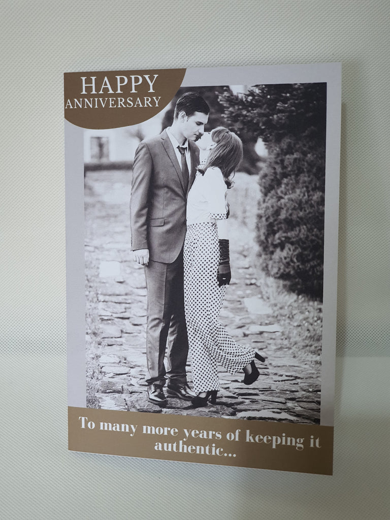 A great anniversary card for everyone, vintage design and heart warming sentiments, to many more years of keeping it authentic. The card is A5 in size and printed on high quality 300gsm cardstock, the card comes with a short message at the front and is blank on the inside, all our cards are supplied with envelopes.